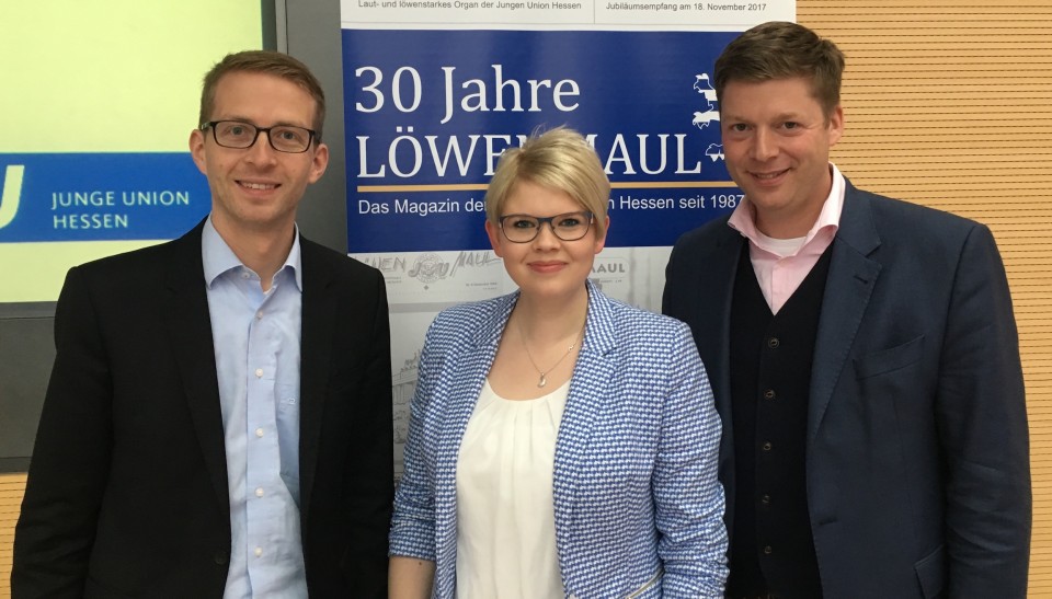 Der Vogelsberger CDU-Landtagskandidat Michael Ruhl(links) steht an zweiter Stelle der hessischen Landtagskandidatenliste der Jungen Union Hessen, freuen sich JU-Kreisvorsitzende Jennifer Gießler und JU-Landesvorsitzender Dr. Stephan Heck(rechts).Der 33-jährige Diplom-Wirtschaftsingenieur aus Herbstein vertrete den ländlichen Raum, so die Junge Union Vogelsberg in einer Pressemitteilung. „Mit Max Schad und Michael Ruhl geht die Junge Union Hessen mit zwei hervorragenden Direktkandidaten in die Landtagswahl am 28. Oktober“, freut sich JU-Landesvorsitzender Dr. Stefan Heck (Amöneburg).
